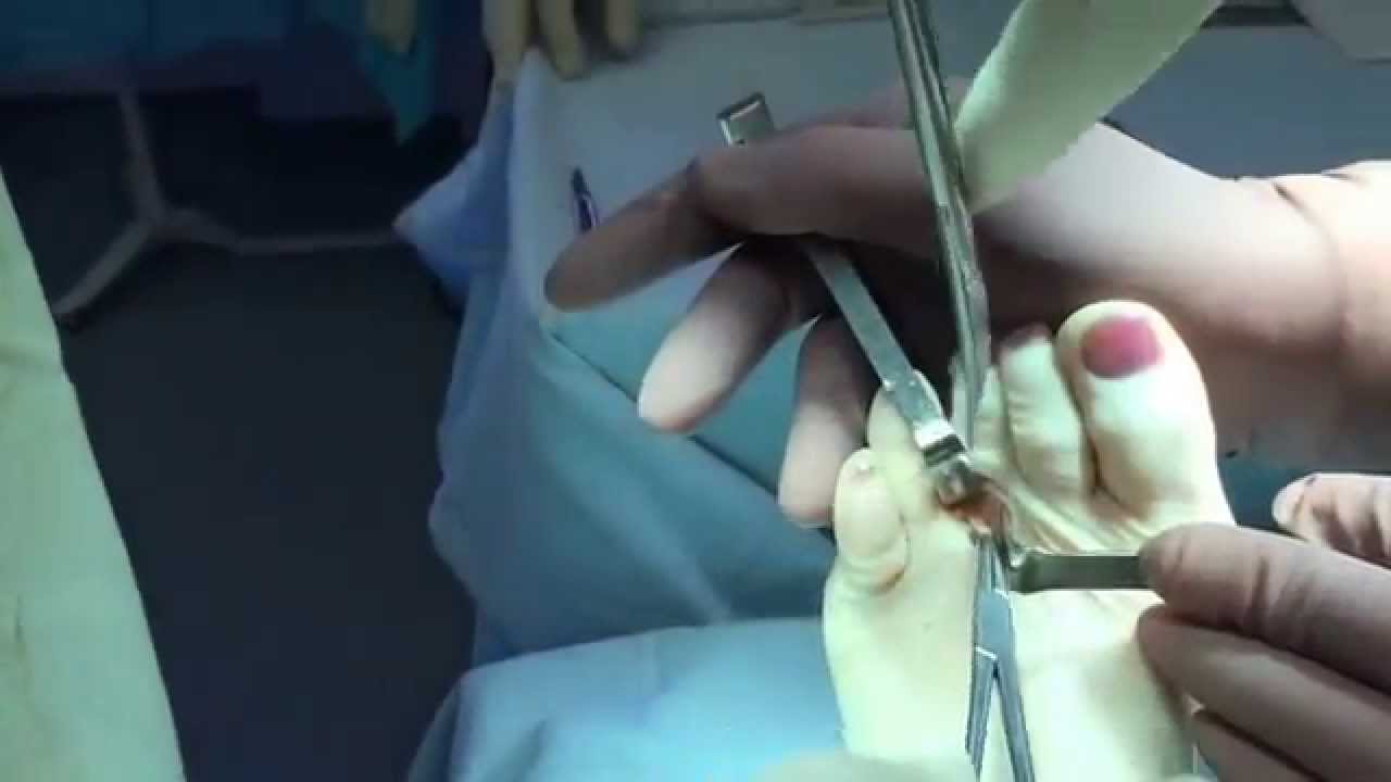 Для проведения операции по удалению невромы стопы используется местная анестезия. Врач иссекает кожу и мягкие ткани на месте расположения поврежденного участка нерва. Разрез делается небольшой – до 2 см. После того, как частица нерва была иммобилизована и иссечена, врач зашивает рану и накладывает стерильную повязку.