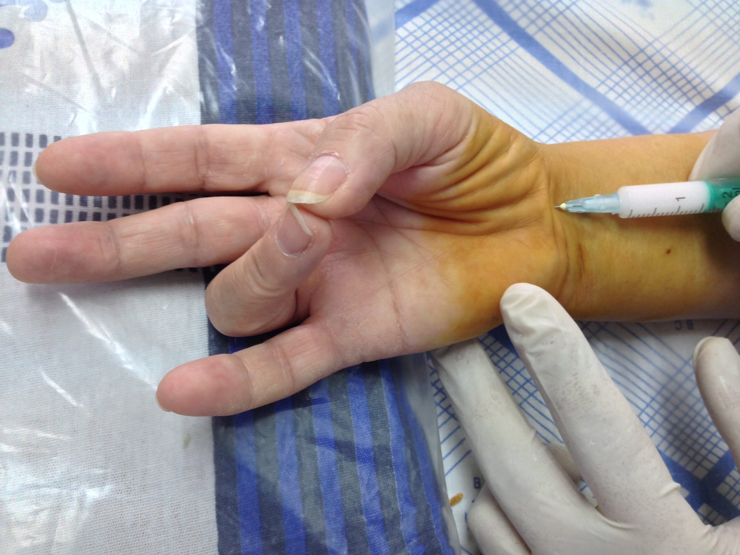 Блокада карпального канала предусматривает введение местного анестетика и глюкокортикостероида с целью уменьшения боли, воспаления и отека.