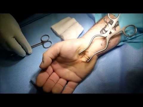 Во время процедуры используется местное обезболивающее. Пациенту на руке делается разрез до 5 см, рассекая поперечную связку. После этого зашивается кожа, а концы связки остаются свободными. Данный метод позволяет значительно снизить нагрузку на срединный нерв и вернуть подвижность запястью. Через некоторое время пространство между концами связки самостоятельно зарубцуется.