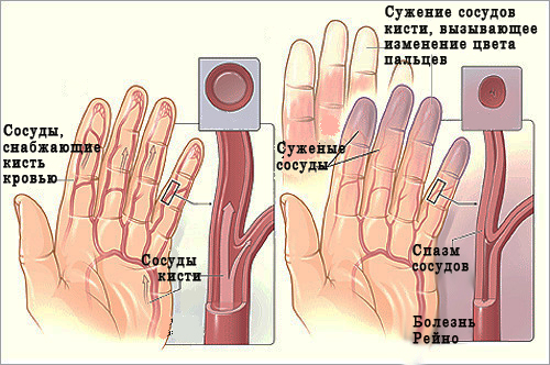 Первые приступы заболевания могут появиться после перенесенных инфекций или воздействия провоцирующих факторов — переутомления, переохлаждения, неумеренного загорания. Развитие болезни Рейно возможно как следствие травмы мозга или сильного эмоционального потрясения. В пользу неврологической природы заболевания говорит также симметричность поражения: проявления болезни почти одновременно захватывают одинаковые участки справа и слева. Но определенное значение имеет и физическая нагрузка на пальцы — заболевание чаще возникает у секретарей, пианисток. Следует избегать вышеперечисленных факторов риска даже здоровому человеку.